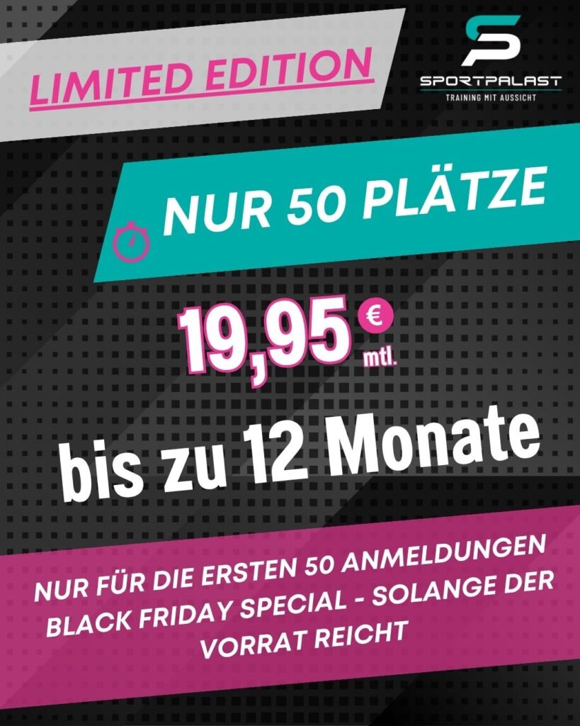 • Alle weiteren Details findest du auf www.sportpalast-fitness.de oder direkt bei uns im Studio.